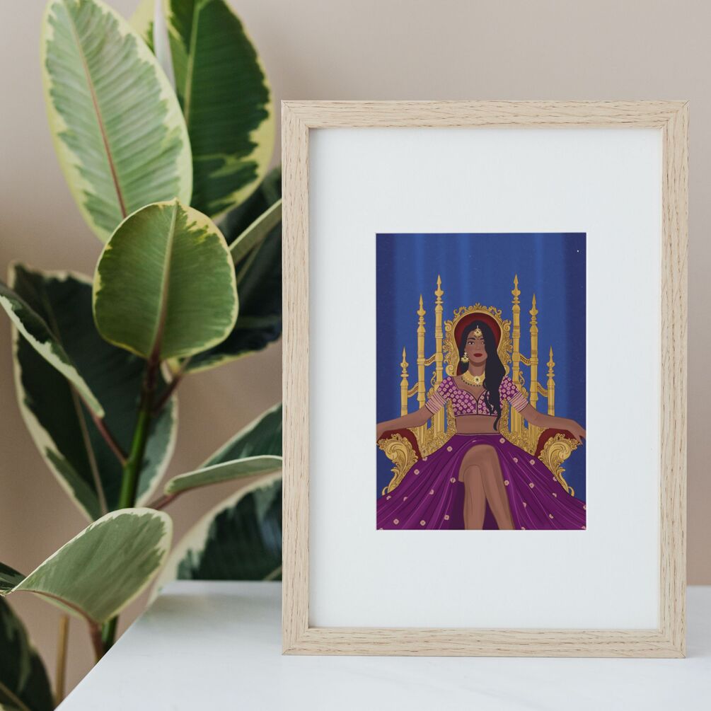 QUEEN - Original digital illustration created by Devika Menon. Inspired by South Asian culture and design.